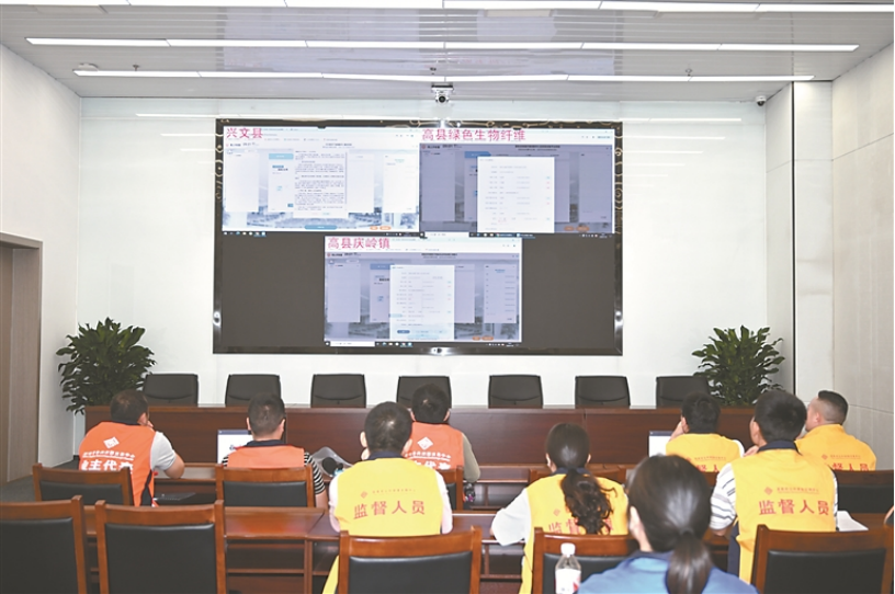 四川省宜宾市纪委监委推动市公共资源交易中心实施招投标“三同时”工作机制,降低投标人、招标代理机构和评标专家勾兑风险.图为近日,该市公共资源交易中心同一日多个项目同时开标现场。
