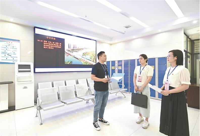 河南省洛阳市偃师区纪委监委聚焦招投标领域突出问题,督促有关职能部门认真履行监管职责,加强评标专家管理。图为近日,该区纪检监察干部到区公共资源交易中心评标现场走访了解相关情况。