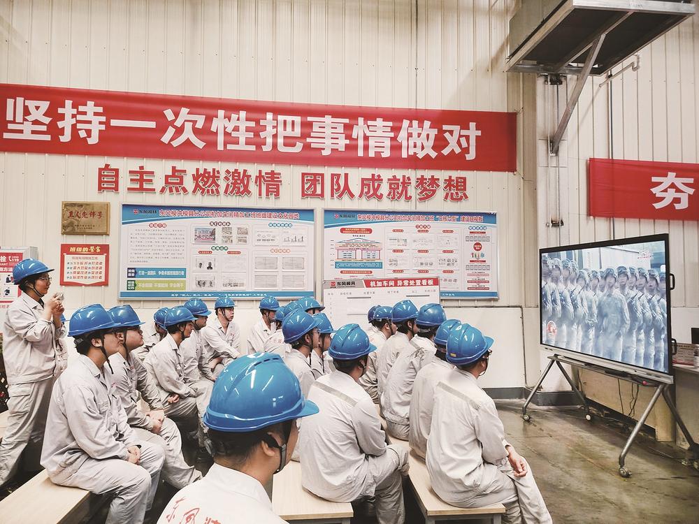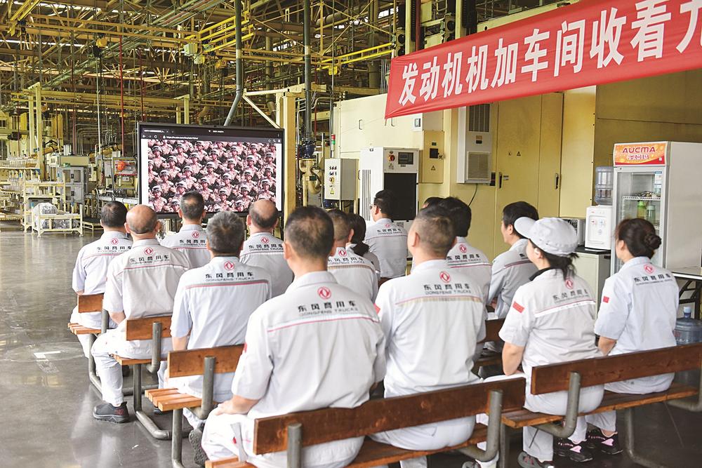 ■东风龙擎发动机车间集中收看九三阅兵直播 邱锦/摄