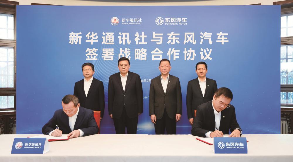 2月2日,东风汽车与新华社在北京签署战略合作协议。新华社社长、党组书记傅华,新华社副社长、党组成员刘健,东风汽车董事长、党委书记杨青,东风汽车总经理、党委副书记冯长军等出席签约仪式。新华社总经理室总经理孙志平,东风汽车党委常委、副总经理黄勇代表双方签约。